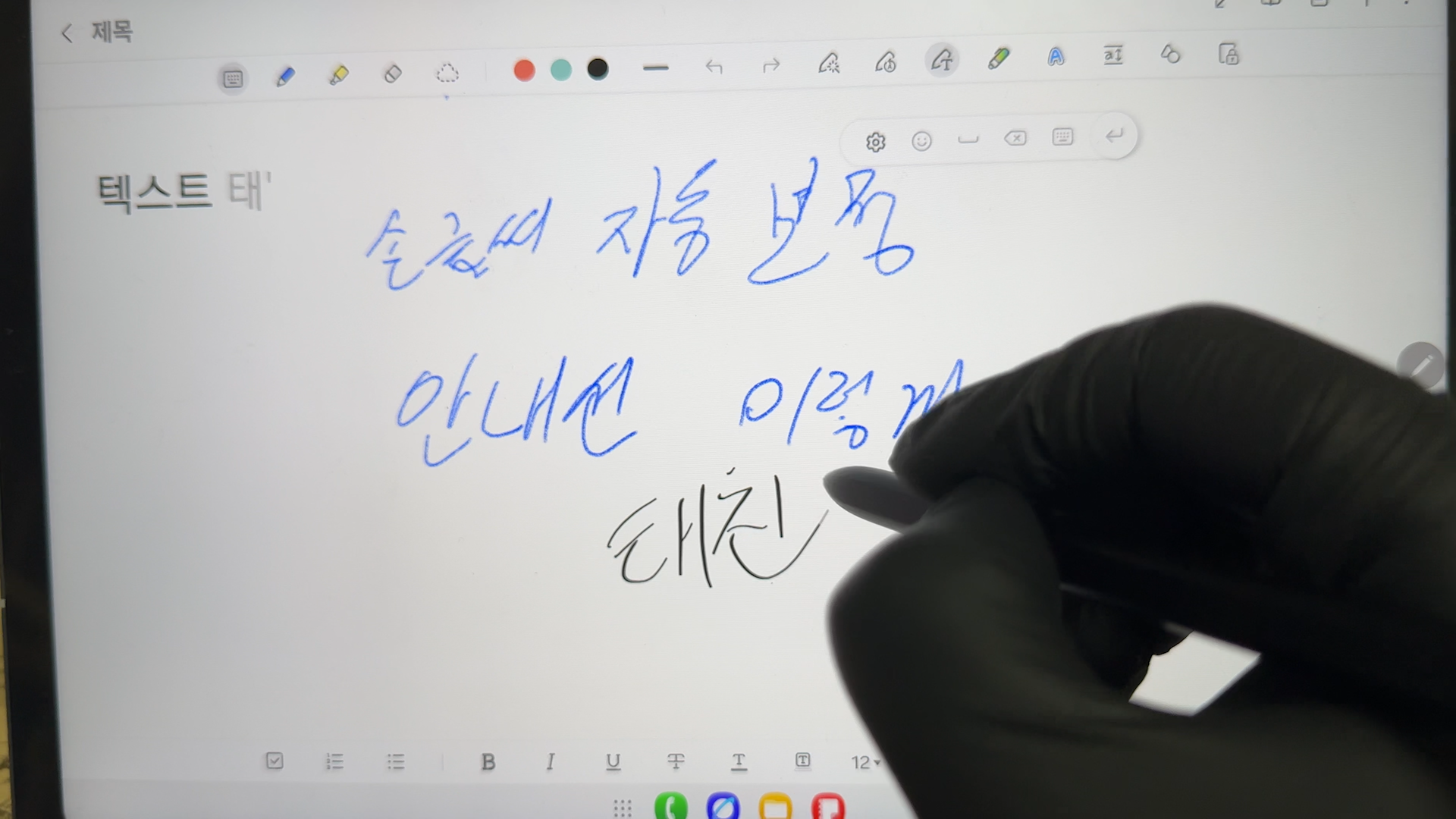 그리고 펜으로 쓰면 텍스트로 변환되는 기능도 있습니다.