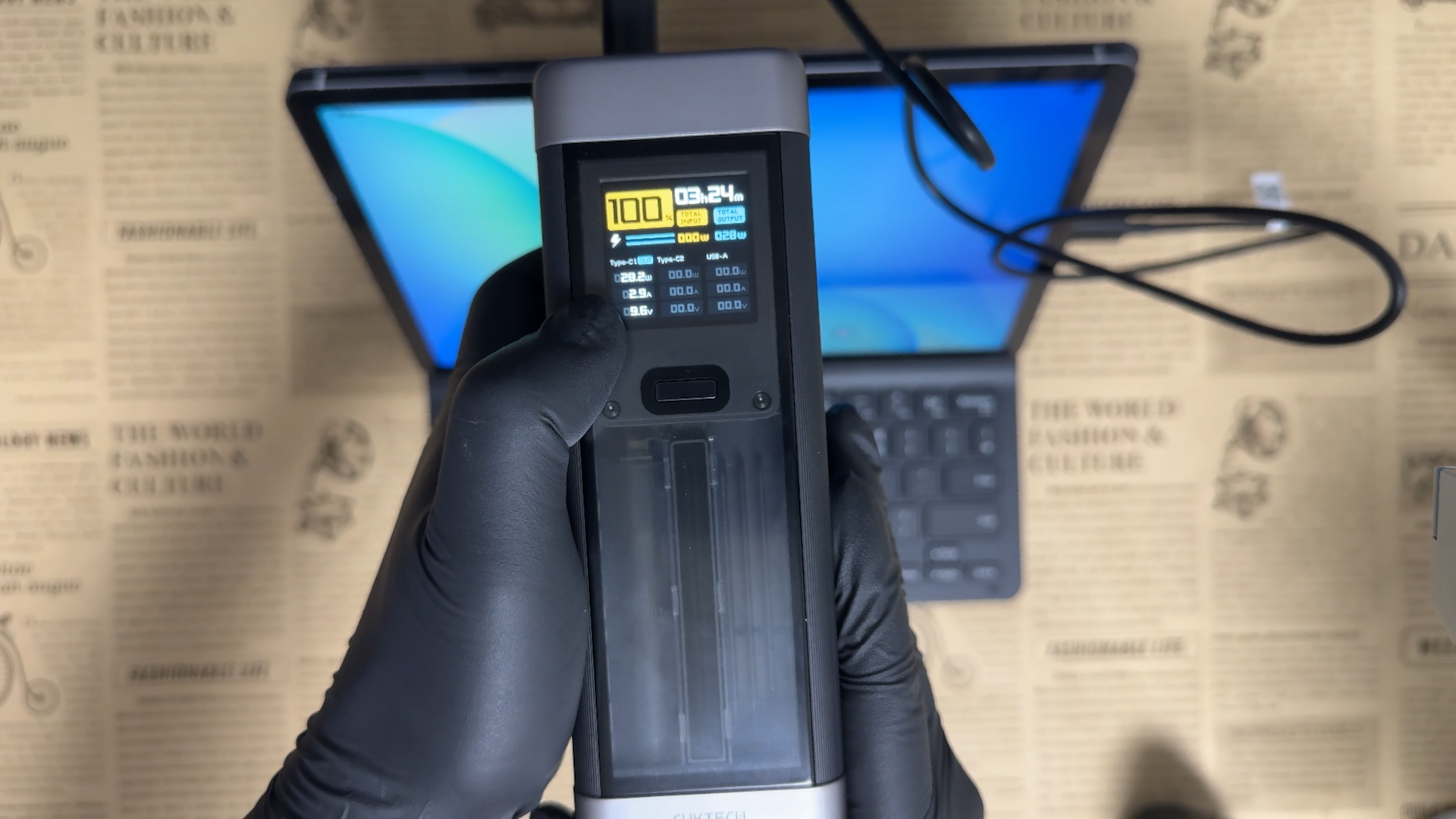 배터리는 8,000mAh 대용량이라 충전 걱정없이 사용할 수 있습니다. 제가 가지고 있는 보조 배터리로 측정해 본 결과 28W 정도로 측정됩니다.