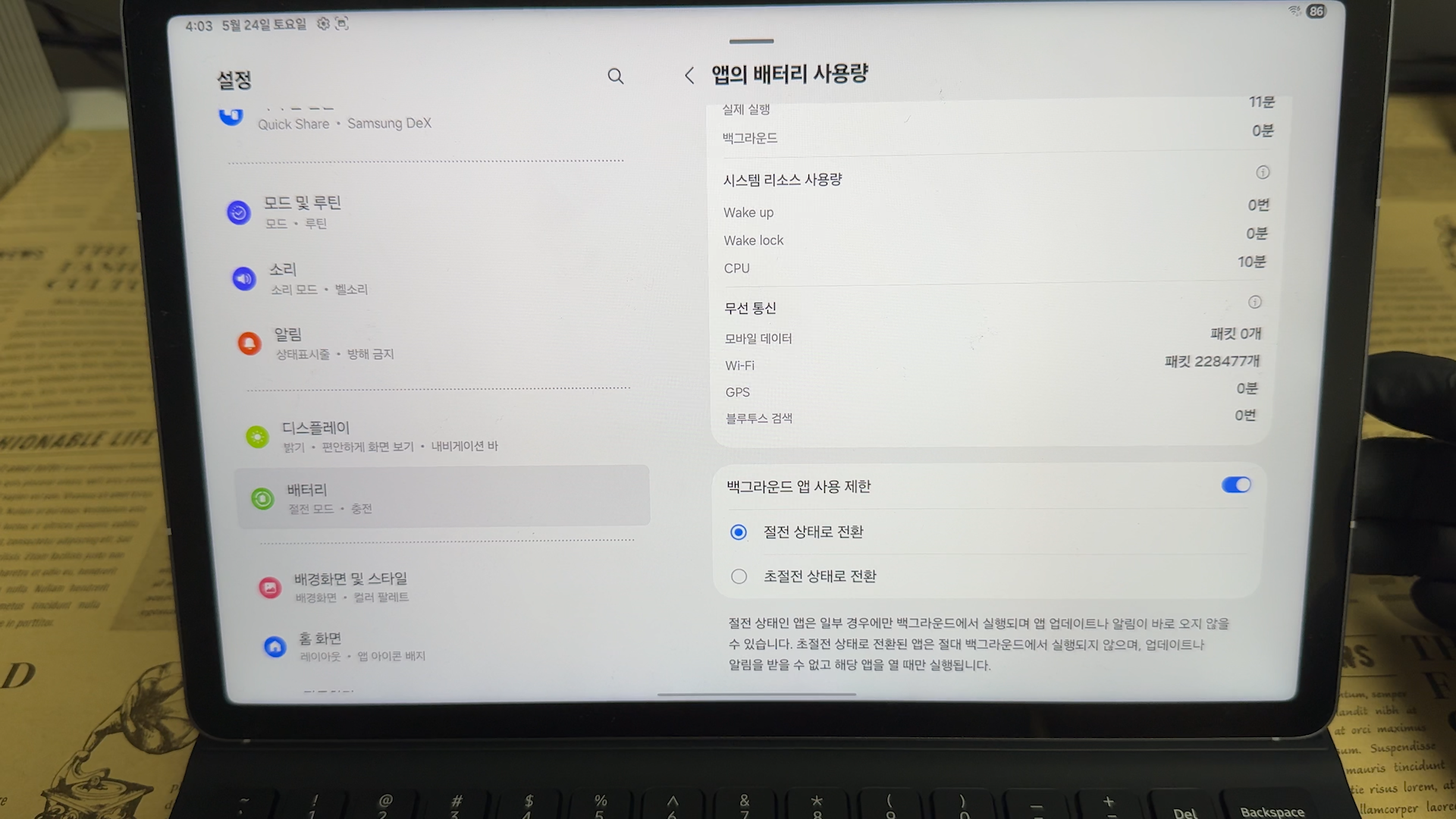 배터리 관리 꿀팁을 소개하면 많은 분들이 단순히 절전 모드나 밝기 조절만 떠올리시는데, 갤럭시탭 S10 FE에서는 ‘앱별 배터리 사용량’ 기능을 꼭 활용해보세요. 설정 > 배터리 > 배터리 사용량에 들어가면 어떤 앱이 배터리를 많이 소모하는지 한눈에 볼 수 있습니다. 만약 자주 쓰지 않는 앱이 배터리를 많이 잡아먹고 있다면, ‘백그라운드 사용 제한’ 옵션을 켜서 자동으로 꺼지게 설정할 수 있어요