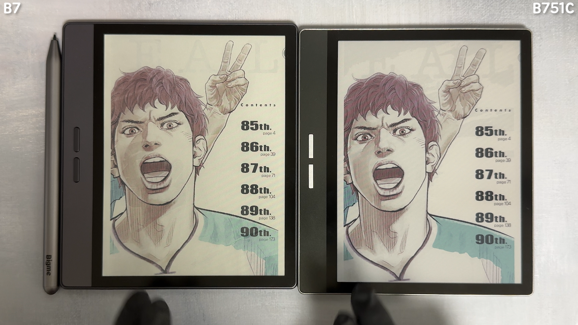 만화책을 책을 열어서 확인해 보겠습니다. 동일 모드인데 색감은 B751C 제품이 더진하게 나오네요 동일 AP를 사용하지만 RAM이 높은 B7 제품이 더 빠릅니다.