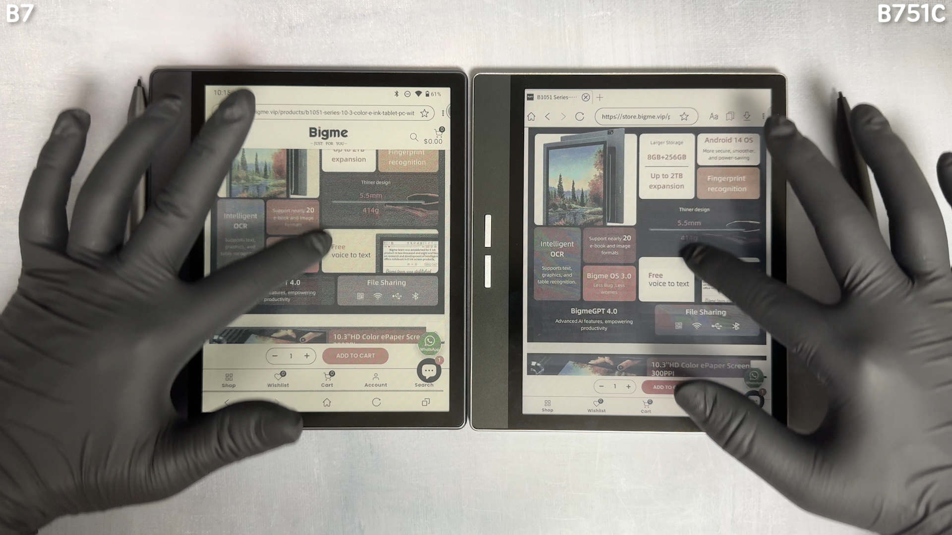 웹서핑 속도를 보여드리면 두 제품 모두 잔상 억제 기술로, 타사 제품들처럼 심한 잔상은 생기지 않습니다. 이런 기술을 탑재한 제품은 현재로써는 Bigme, ONYX와 같은 몇 군대 회사들만 있습니다. 다른 업체들은 아직 이 정도까지 기술을 올리지는 못했습니다.