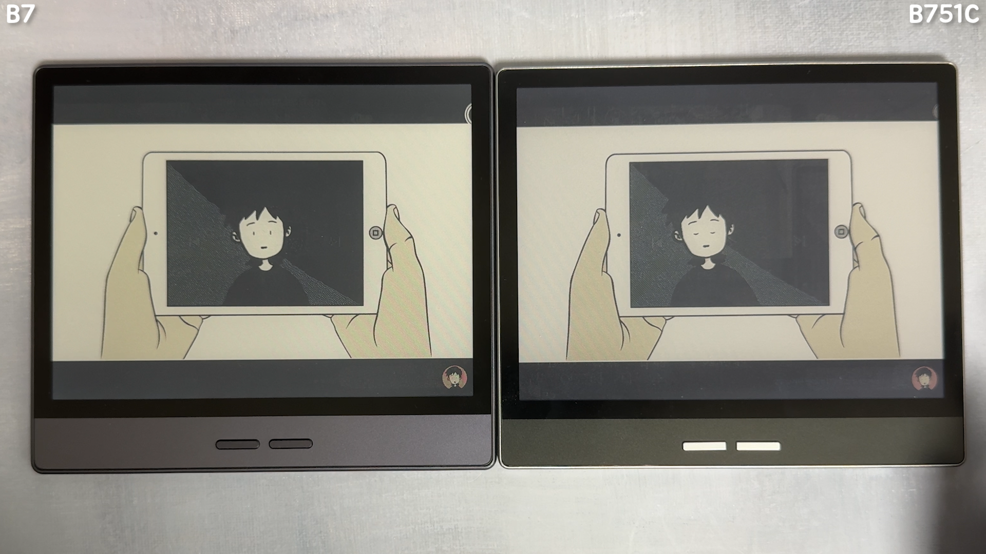 Bigme 제품은 비디오 모드가 별도로 있어서 영상 감상에도 최적의 화질을 보여줍니다. 사운드를 들어 보면, 둘 다 음질은 평범합니다. 굳이 비교하자면 B7 제품 보다는 B751C 제품 스피커 출력이 더 높습니다. 두 제품 모두 자동 회전 기능을 제공하고 있어서 태블릿처럼 편하게 사용할 수 있습니다. 물빠진 컬러로 영상을 감상하니까 아날로그 TV에서 시청하는 느낌이 있습니다.