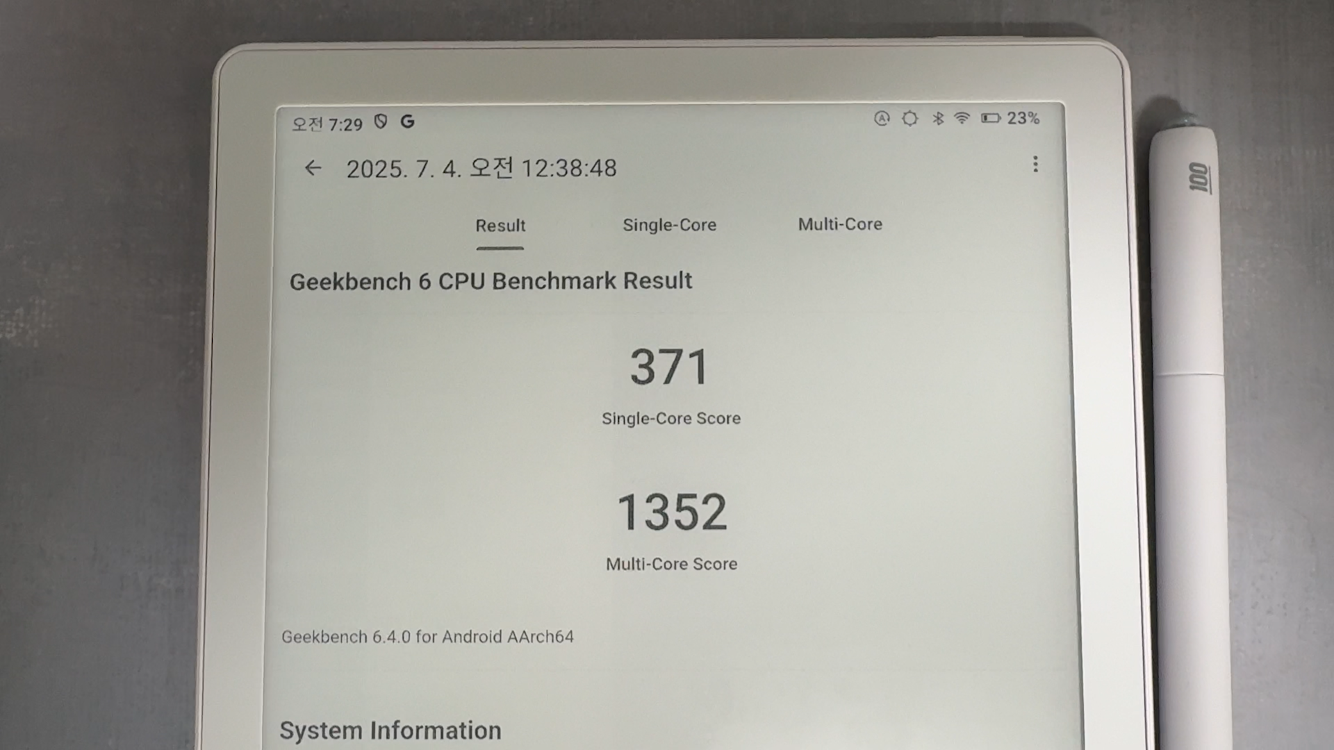 제품 스펙은 안드로이드 14, ockchip RK3576 8코어 제품입니다. RAM 6GB, 64GB이기 때문에 충분히 빠릅니다. Geekbench 6 측정은 보여드릴께요.