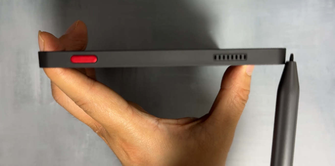 Bigme B6는 후면이 무광 블랙으로 마감되어 깔끔하지만, 지문은 약간 잘 묻는 편입니다.