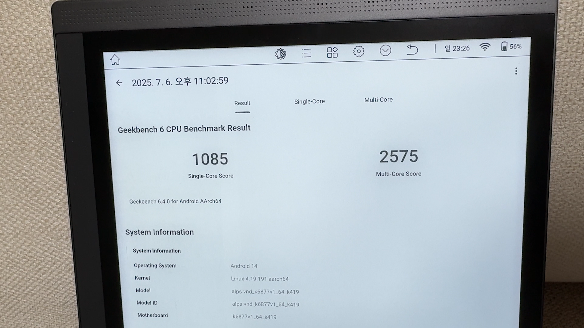 - Single-core: 1085