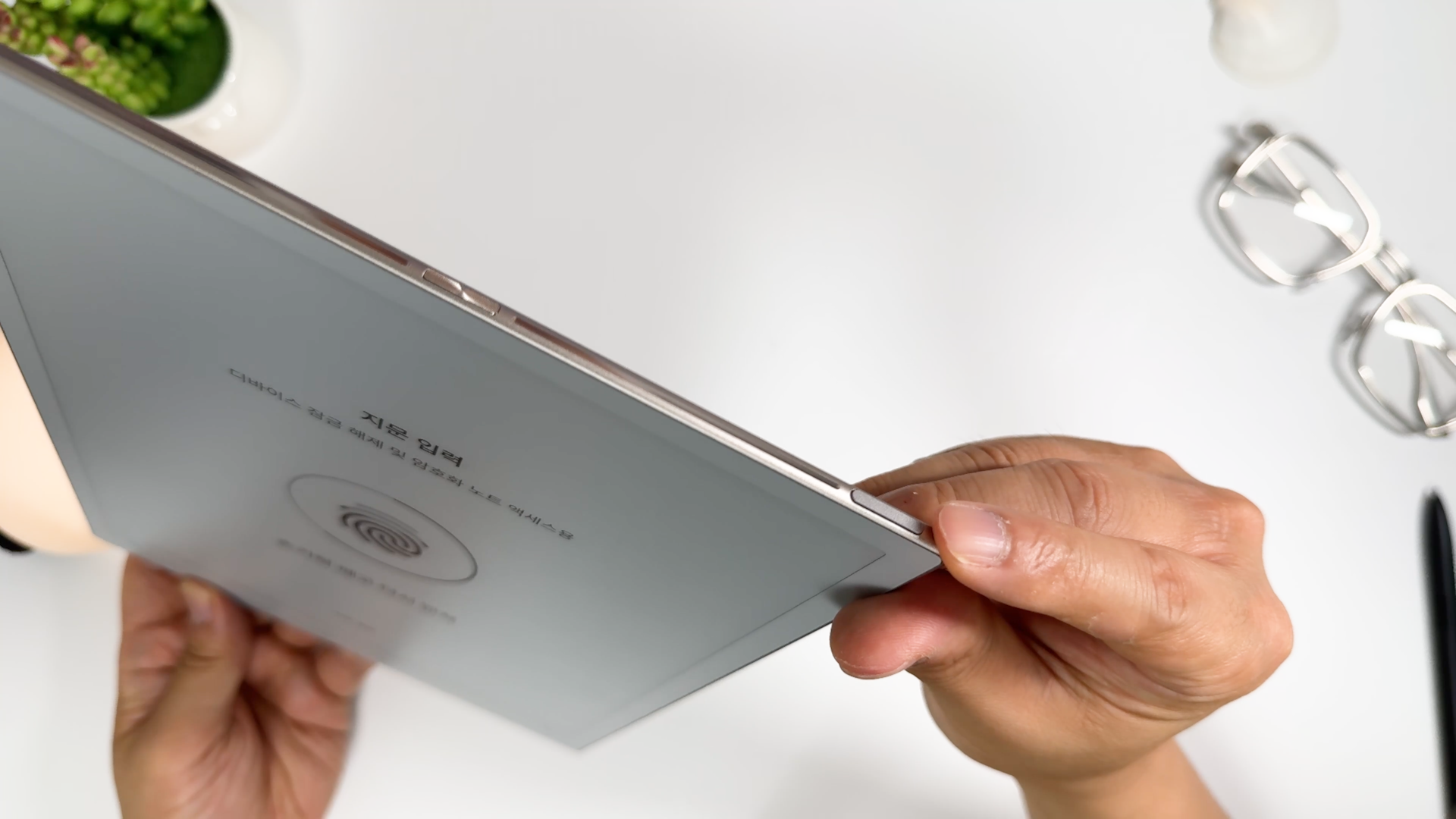 - 전원 버튼에 지문 인식 기능이 통합되어 있어 보안성이 높습니다.